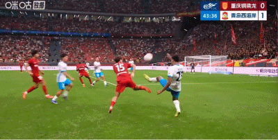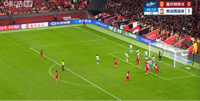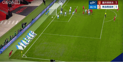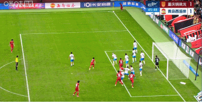 第45+1分钟,扳平比分,杜月徵头球顶近角得分,铜梁龙1-1