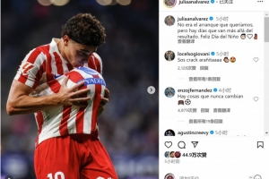 体育资讯8月18日讯 西甲首轮比赛,阿尔瓦雷斯任意球破门,马竞客场1-2不敌西班牙人, 阿尔瓦雷斯社媒晒出庆祝进球的照片,配文:“这不是我们想要的开局,但有一些日子超越了比赛结果,儿童节快乐!” 注:阿根廷儿童节为8月的第三个周日,今年是8月17日